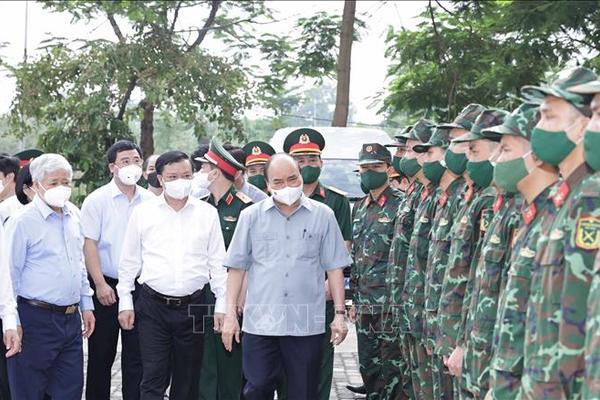 Chủ tịch nước Nguyễn Xuân Phúc sáng nay đã có chuyến thăm hỏi động viên và tặng quà lực lượng tuyến đầu chống dịch và người dân một số khu vực trên địa bàn thành phố Hà Nội.