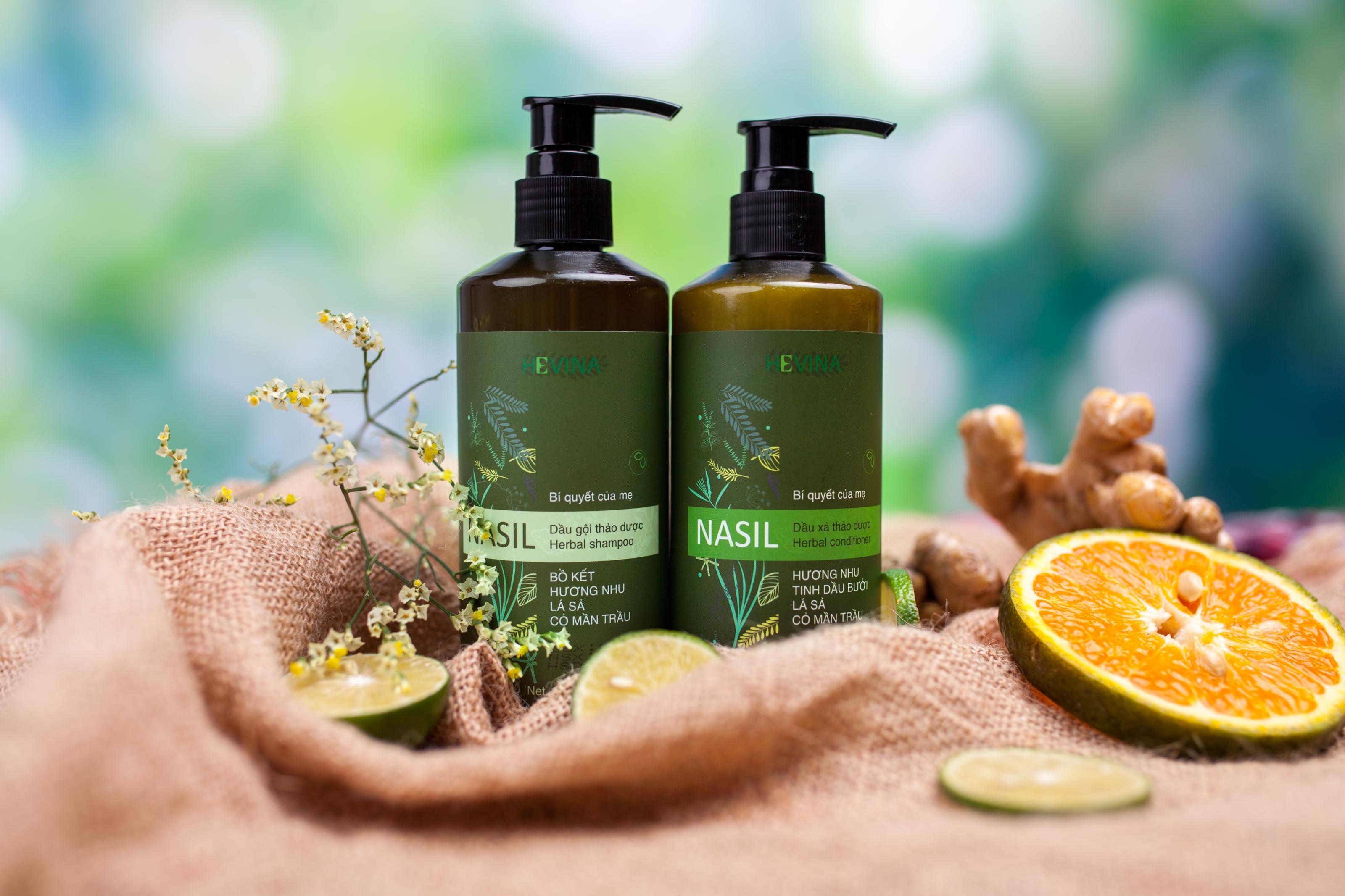 Bộ Dầu gội, Dầu xả thảo dược Nasil, của Hevina được sản xuất theo công thức thuần Việt
